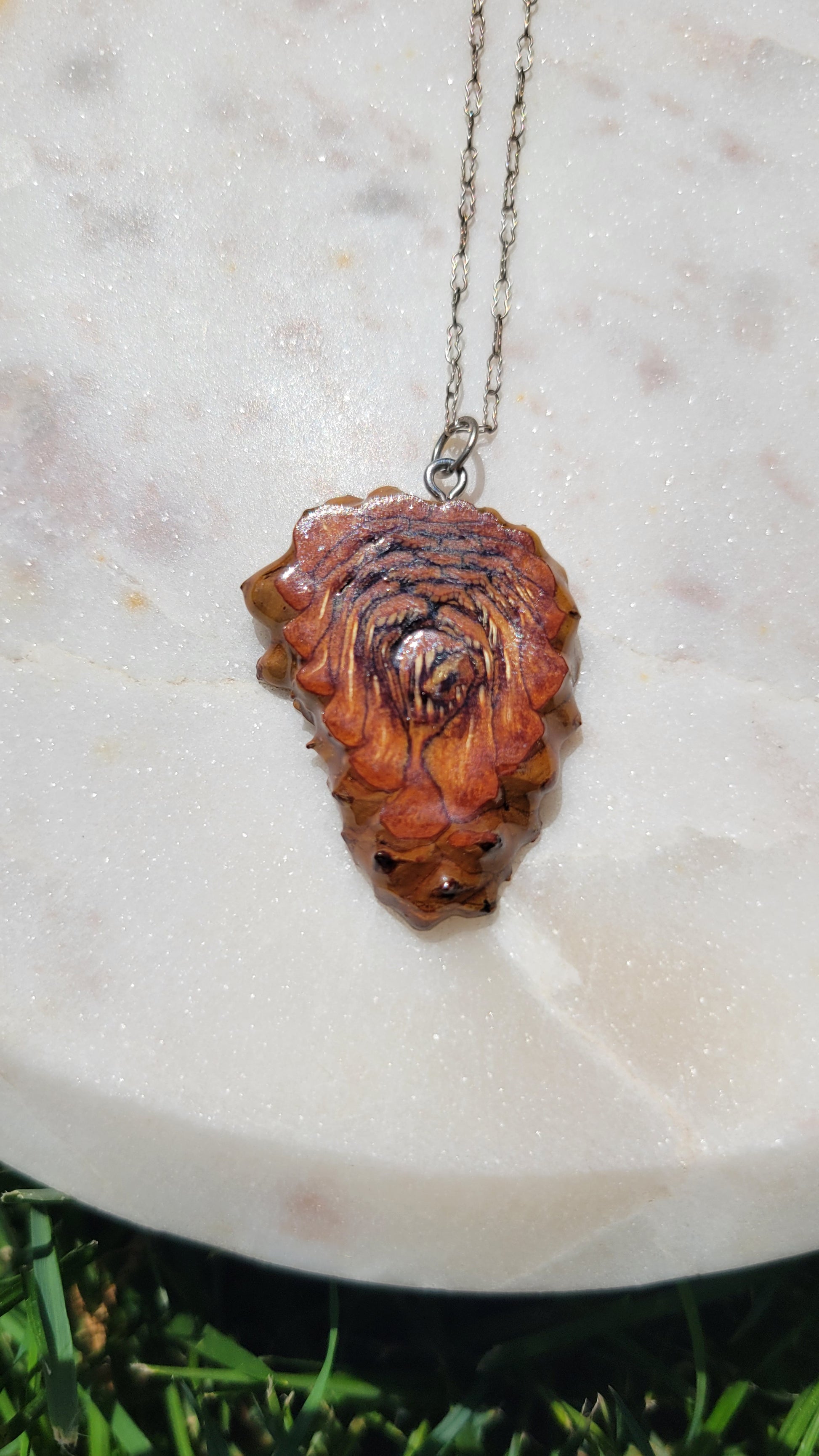 A fine longitudinal section of a pine cone on some sterling silver. Don't mind if I do!